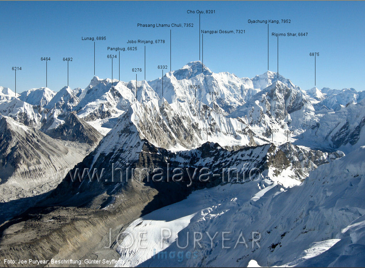 nach Nordosten zum Numbur (6958 m) Diese Gipfel zählen zum Shorong Himal, dessen Beschreibung hier zu finden ist. Foto: Pierre Martin (www.martinpierre.fr); Beschriftung: Günter Seyfferth