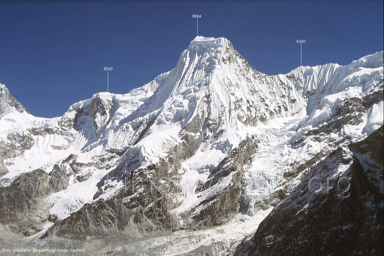 Osten zum 5945 m hohen nördlichen Vorgipfel des Chhukyima-Go Foto: unbekannt; Beschriftung: Günter Seyfferth