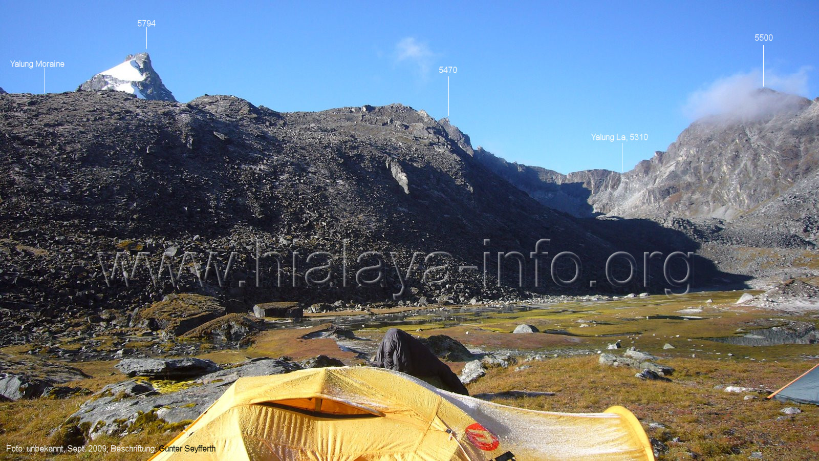 nicht ausreicht, Foto: unbekannt, Sept. 2009; Beschriftung: Günter Seyfferth (41) Blick vom Yalung-Hochlager zum Yalung La (5310 m)