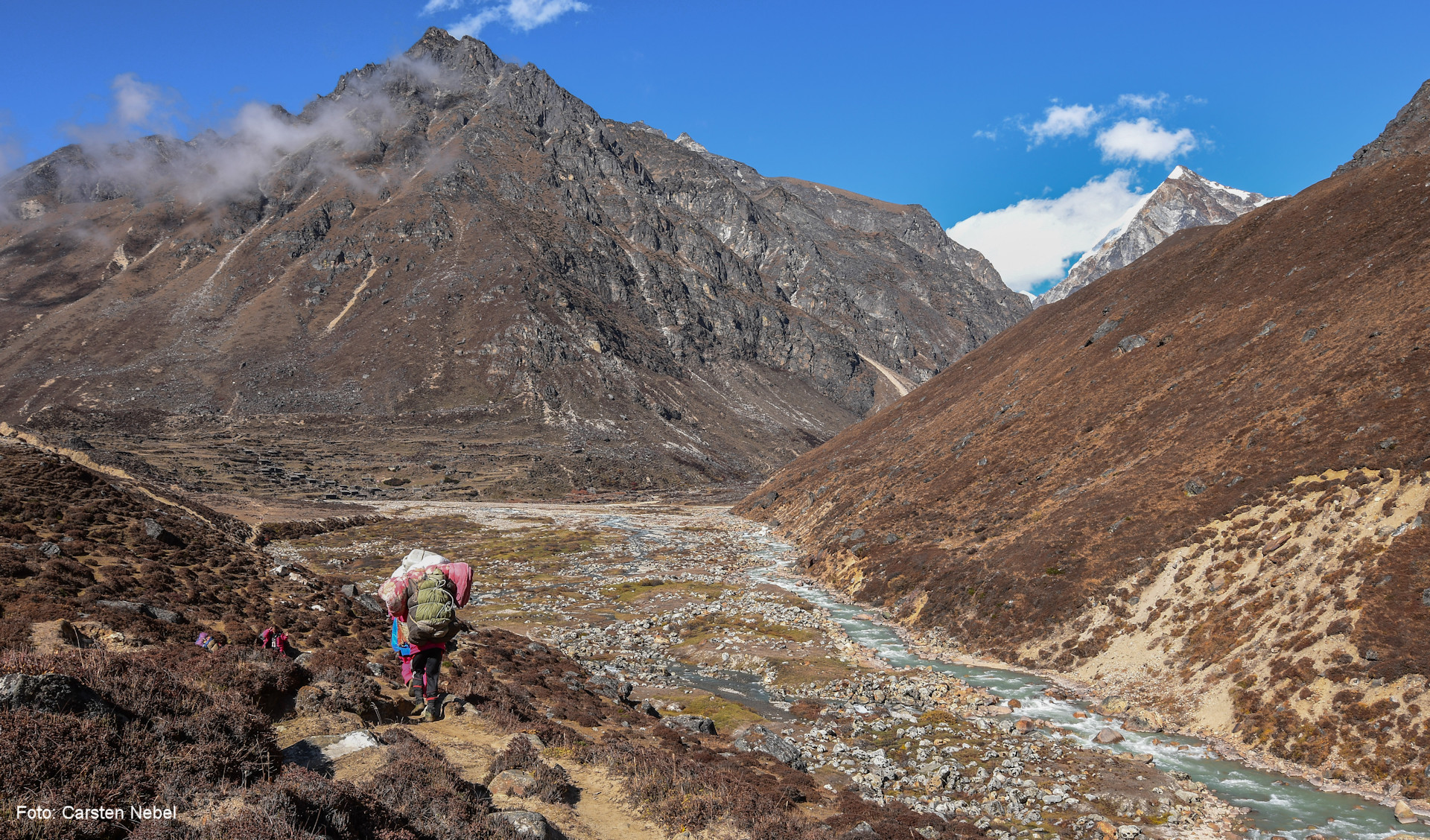 durch das Tal des Thasa Khola hinunter zum Yangma Khola. Am Punkt