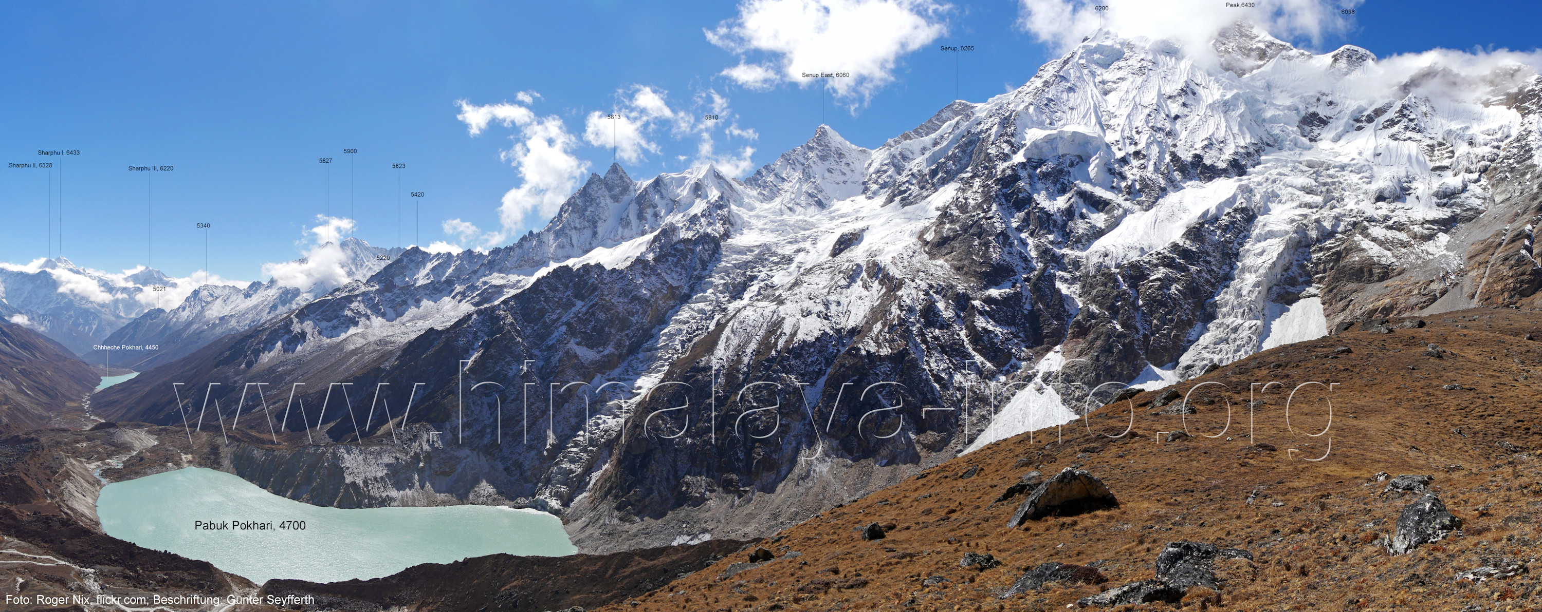 Nord-Nordosten verläuft mit dem Senup (6265 m), dem Peak 6430,