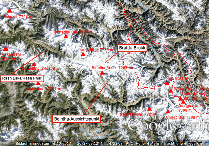 auf verschiedene Regionen des Himalaya. Mit Hilfe der Fernsichten, die