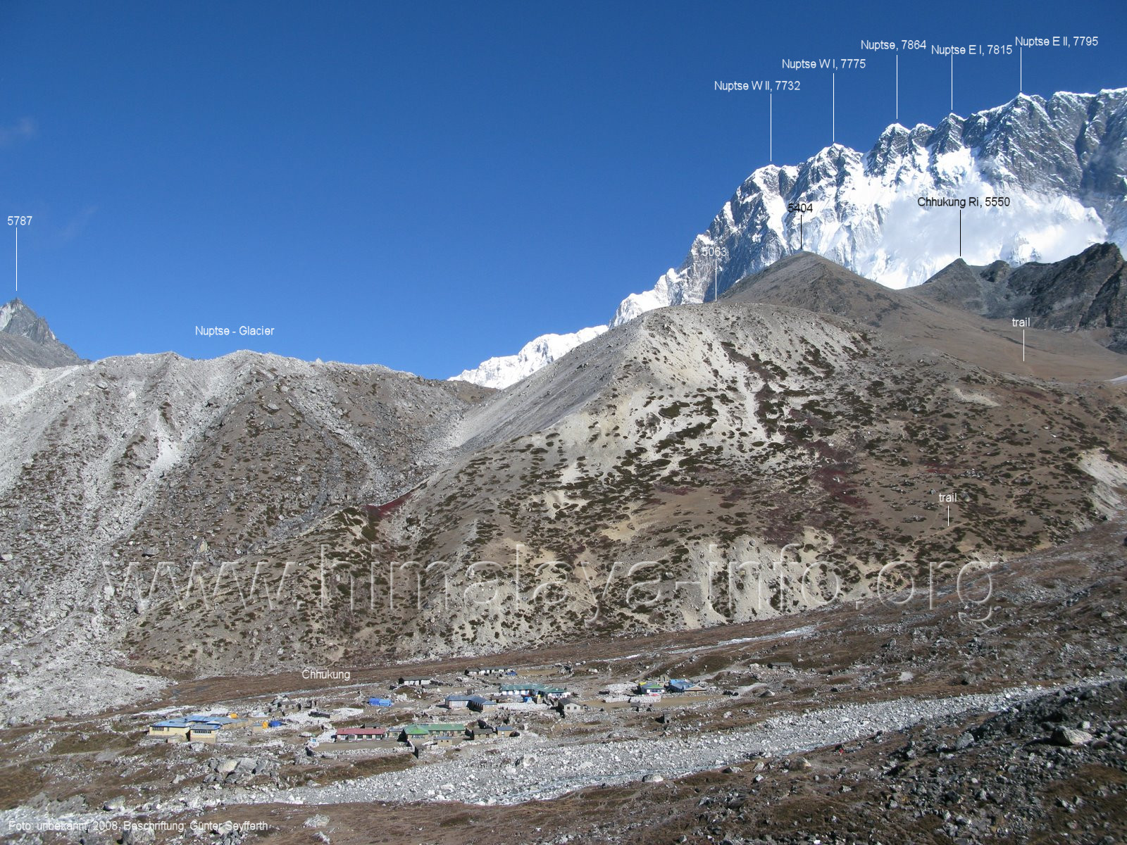 markiert. Gegenüber diesem Foto aus dem Jahr 2008 stehen in Chhukhung heute