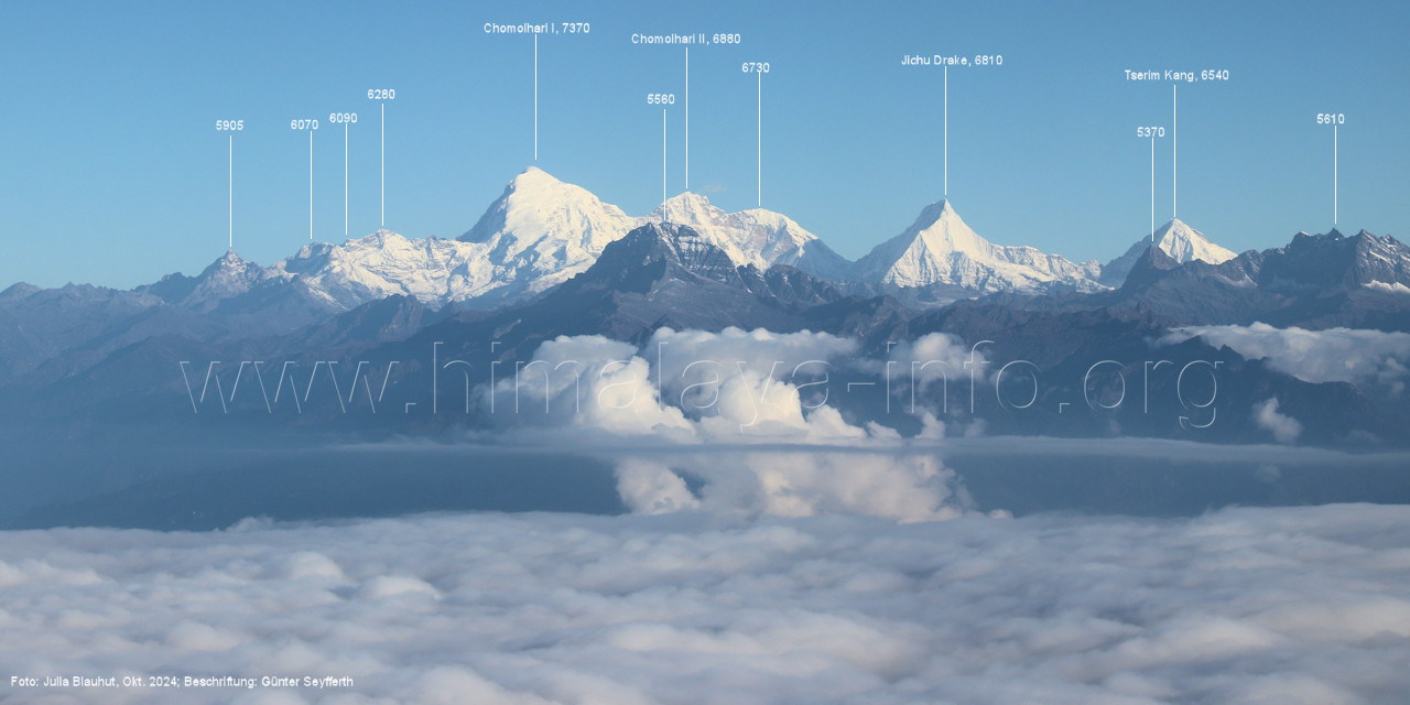 (163) Tserim Kang (6540 m), Jichu Drake (6810 m), Chomolhari II (6880 m) und