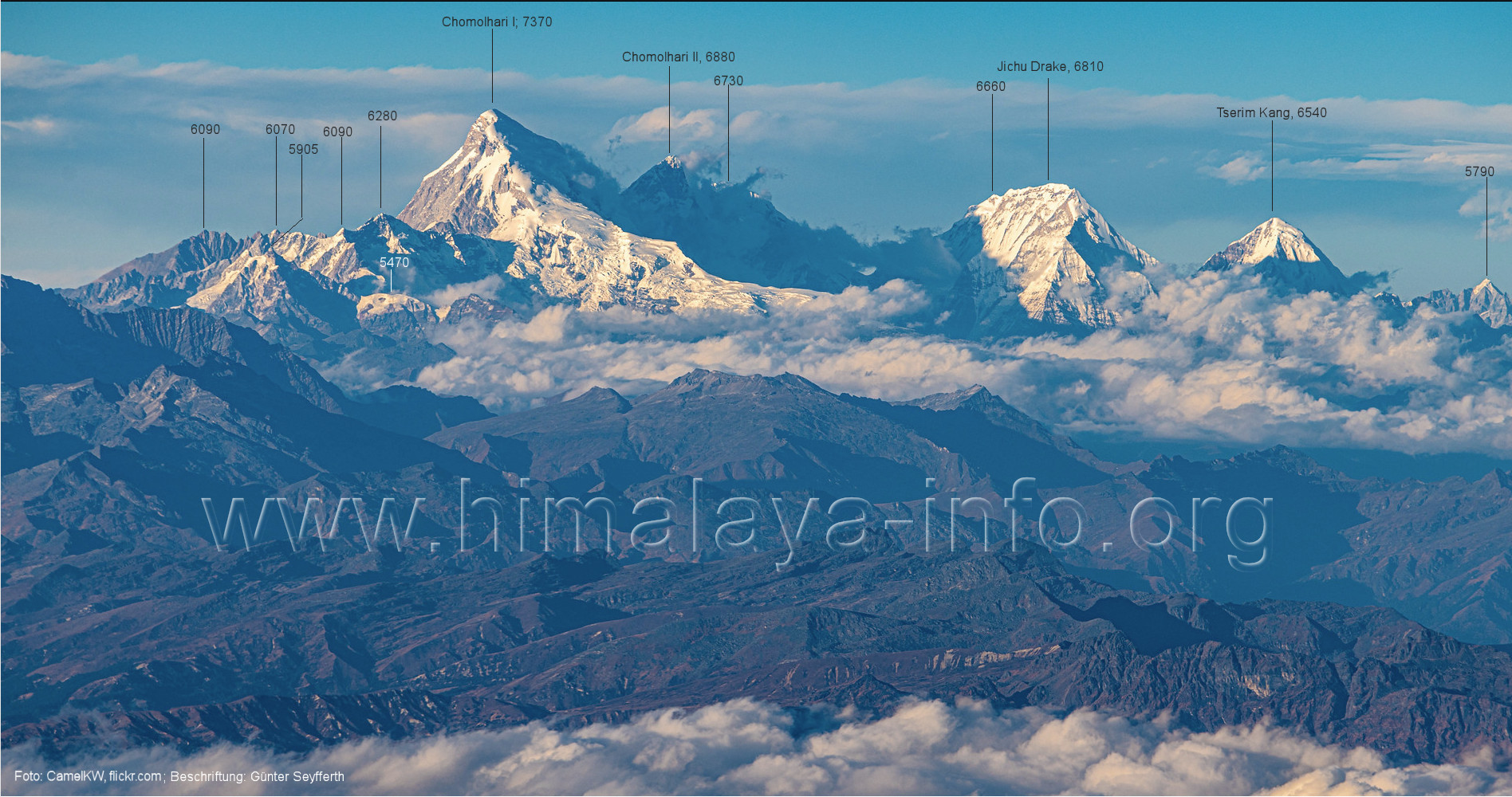 Chomolhari I (7370 m) Bild Nr. 186 zeigt diese Gipfel von Süden. Foto: John Town, flickr.com; Beschriftung: Günter Seyfferth Es folgen nach Osten diese Gipfel: (164) Gangchenta (6678 m) von Nord-Nordwesten Foto: John Town, flickr.com; Beschriftung: Günter Seyfferth (165) Tsenda Kang (6540 m) und Masang Kang (6710 m) von Nordwesten Foto: John Town, flickr.com; Beschriftung: Günter Seyfferth