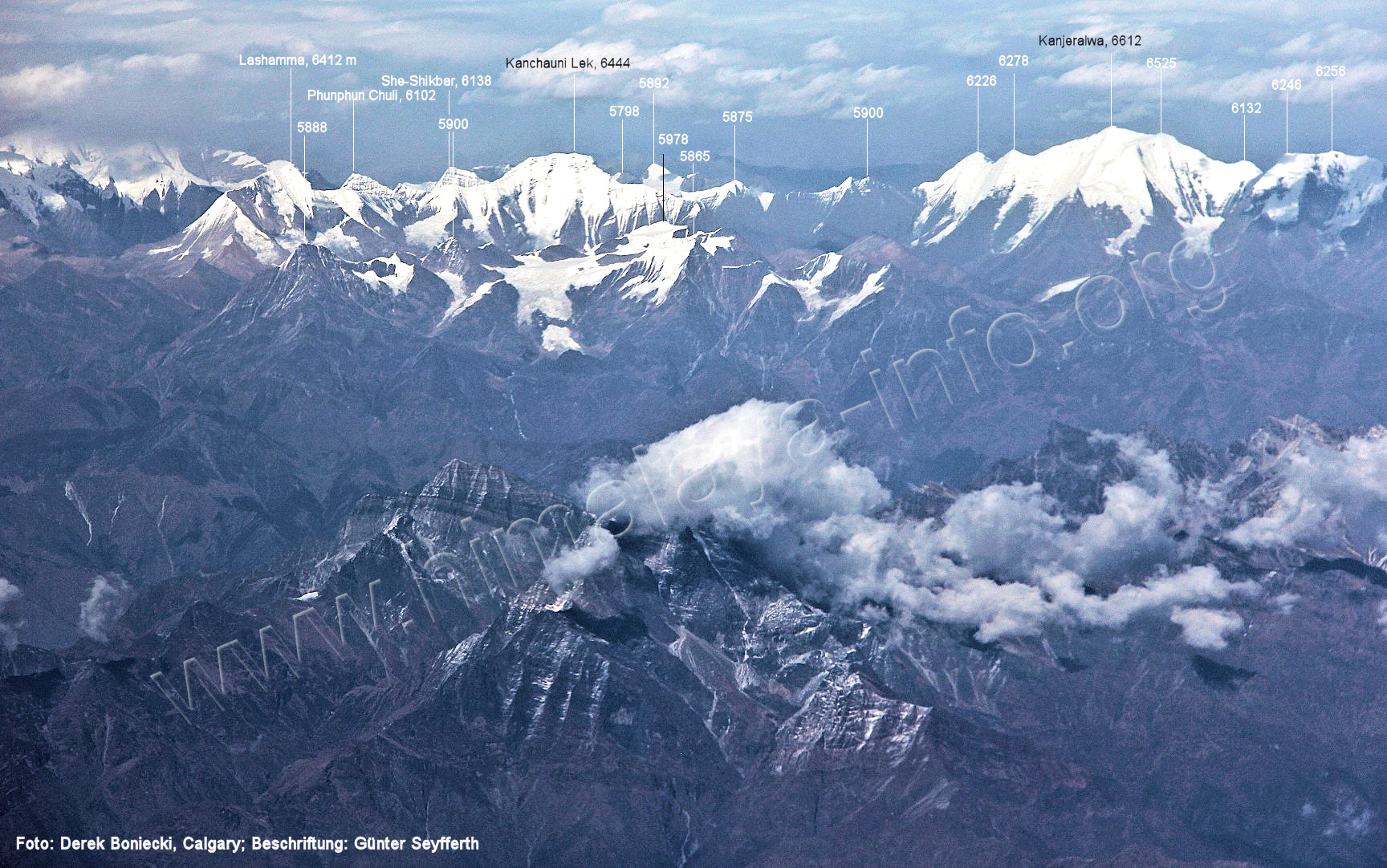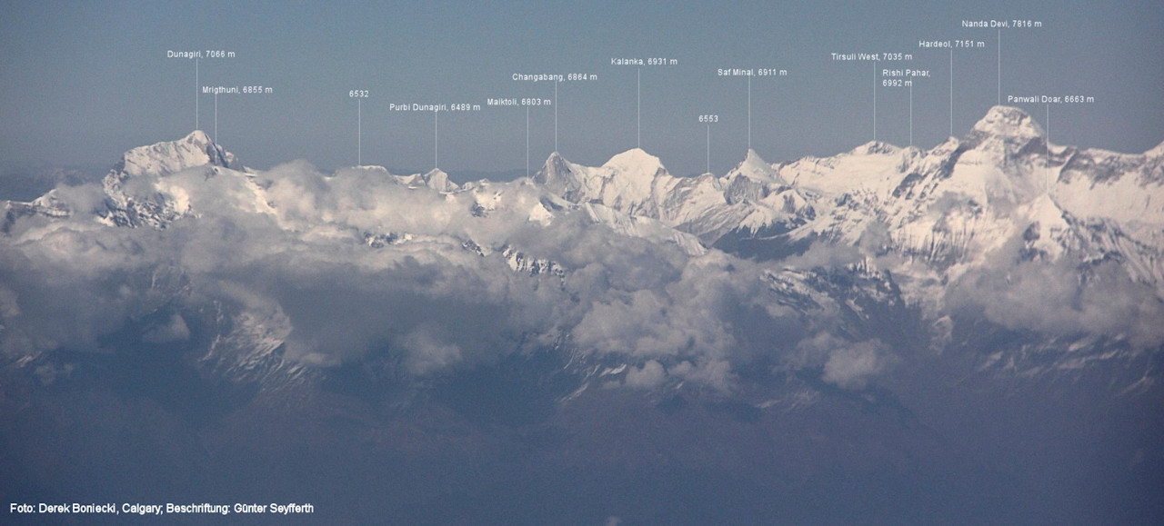 Link. (2) Die Berge des westlichen Garhwal von Süden Foto: Derek Boniecki, Calgary; Beschriftung: Günter Seyfferth (3) Die Berge des westlichen Garhwal von Süd-Südosten Foto: Derek Boniecki, Calgary; Beschriftung: Günter Seyfferth (4) Die Berge des nördlichen Garhwal mit dem Kamet (7756 m) von Süden Über die Berge am Horizont verläuft die Grenze zwischen Indien und China. Foto: Derek Boniecki, Calgary; Beschriftung: Günter Seyfferth Luftbilder des östlichen Garhwal