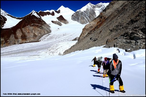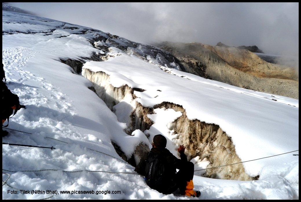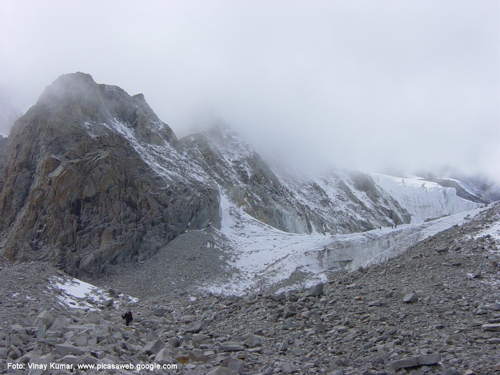 das Bild. Die Querung des Vasuki-Gletschers ist heikel. Zunächst geht