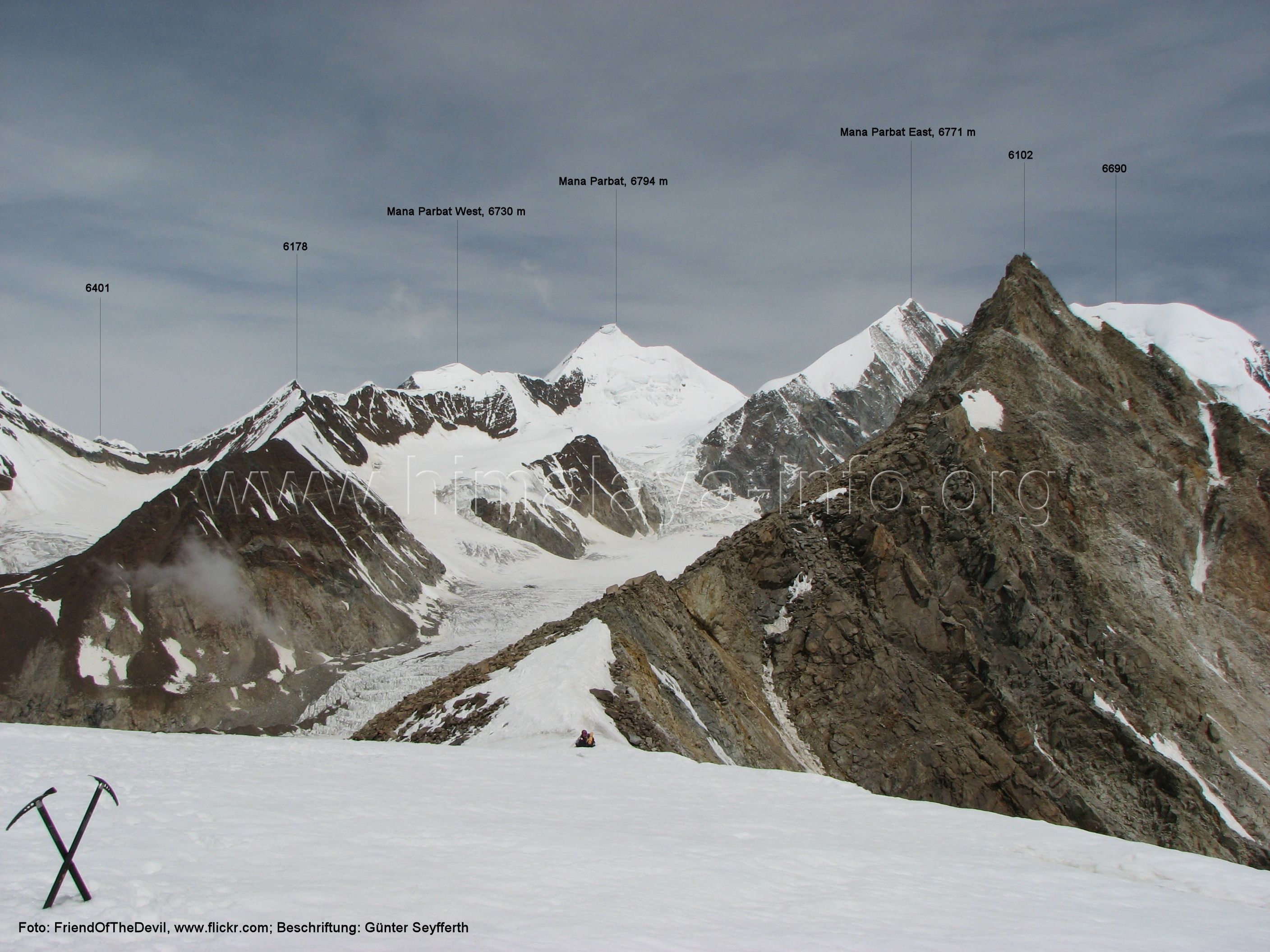 (5947 m) nach Nordwesten zum Mana Parbat (6794 m)