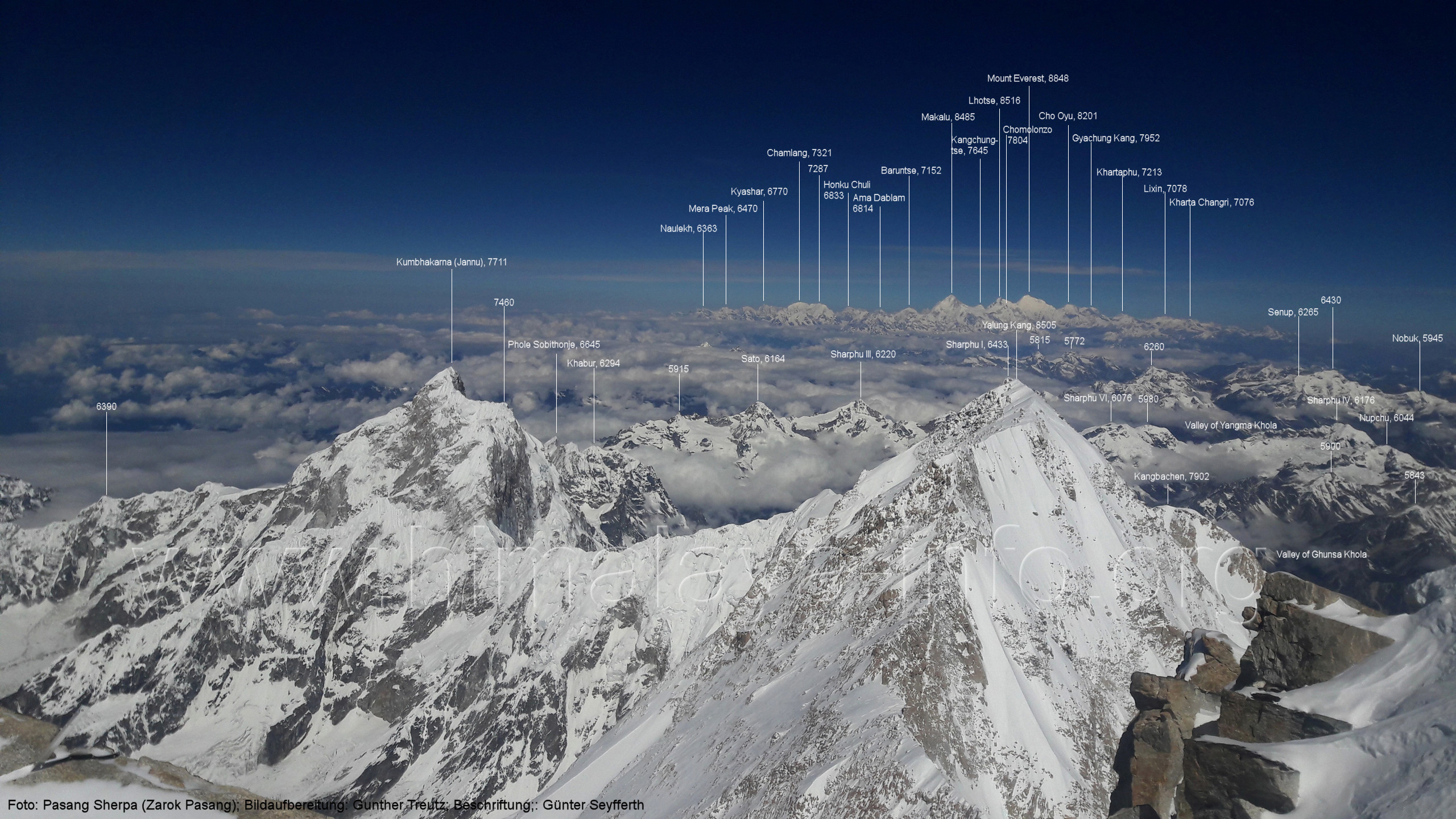 Gipfelpanorama vom Kangchenjunga, 8586