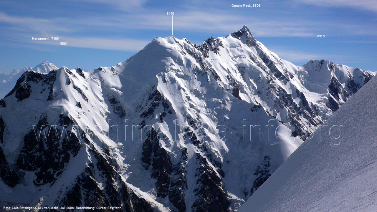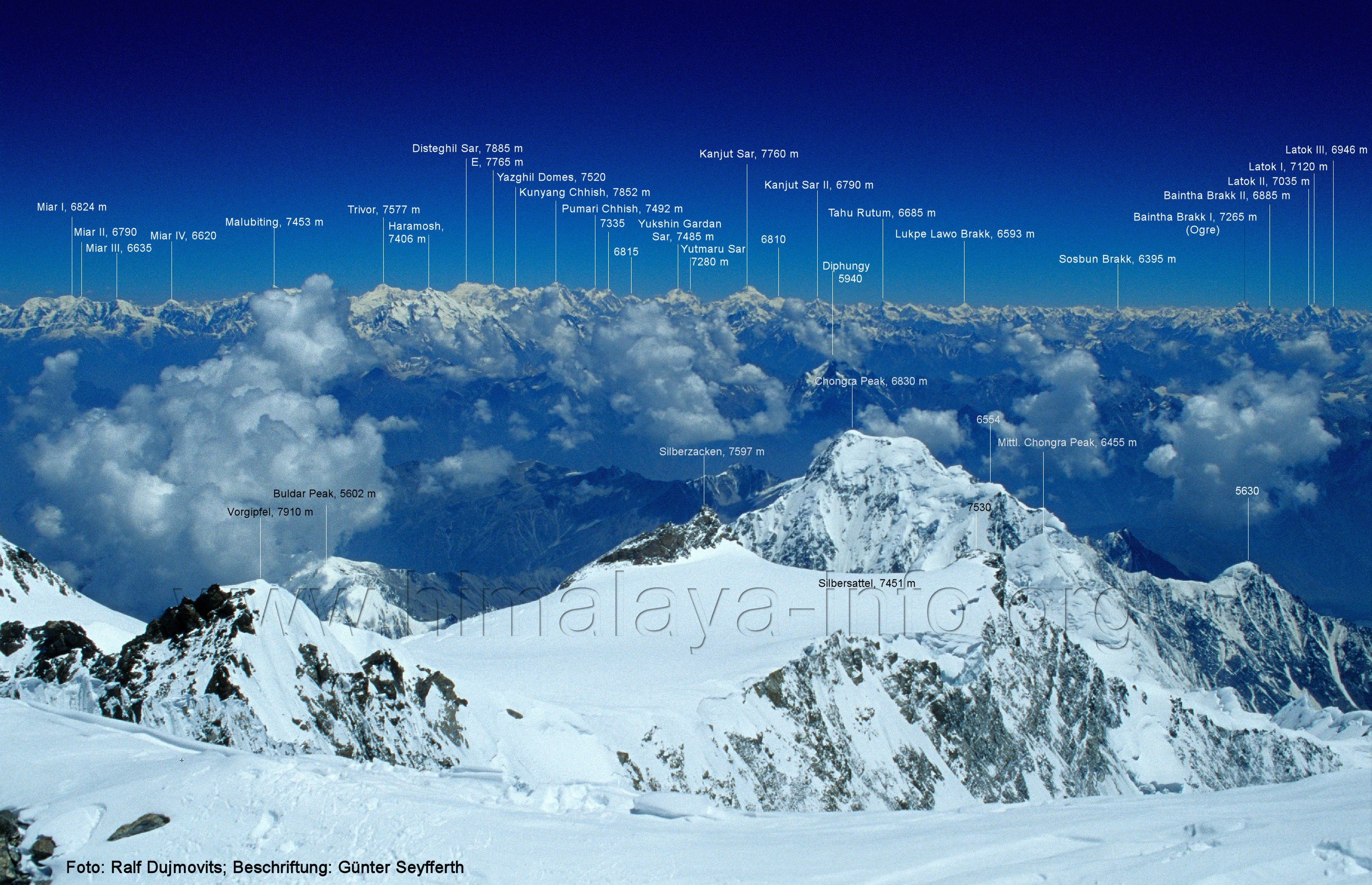 (7120 m) im gleichnamigen Westgrat, der Rakhiot Peak (7070 m) und der Chongra Peak (6830 m) im Nordostgrat sowie der Ganalo Peak