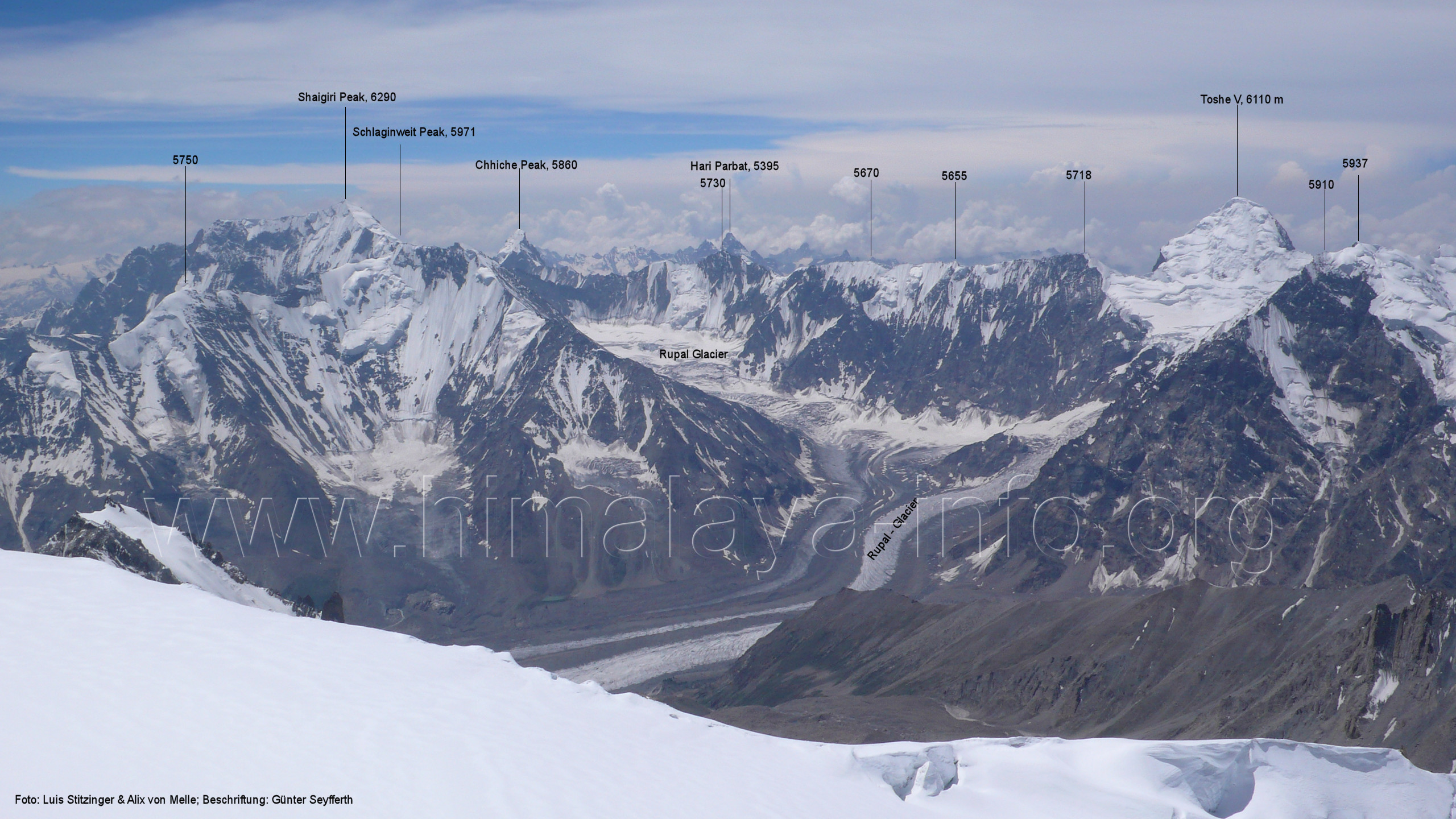 Rupal-Tales, stehen niedrige Sechstausender bzw. hohe Fünftausender (siehe