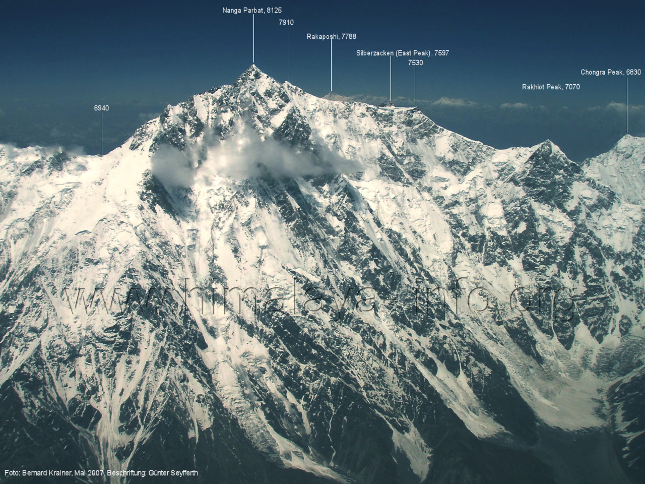 Luftbilder vorangestellt, die den Nanga Parbat aus unterschiedlichen Richtungen