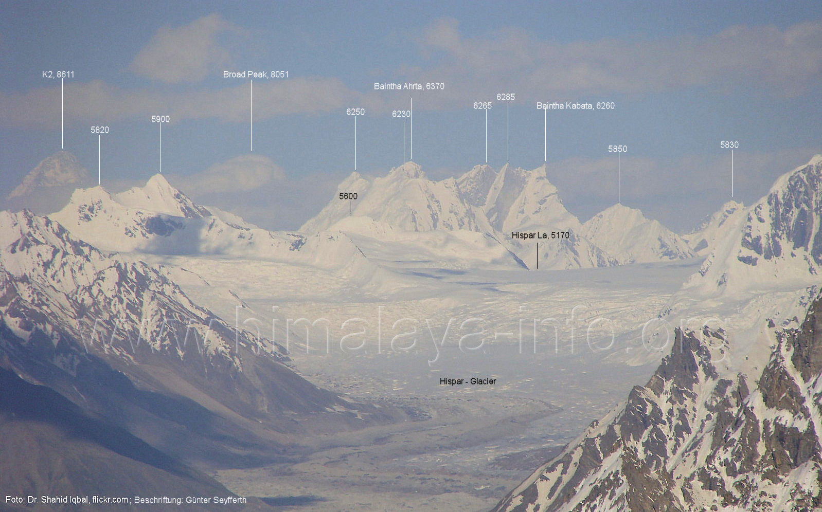 Links sieht man die östlichsten Gipfel des Hispar Muztagh. Foto: Dr. Sahid Iqbal, flickr.com; Beschriftung: Günter Seyfferth