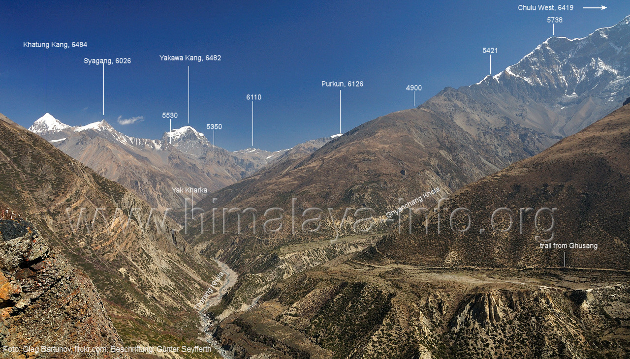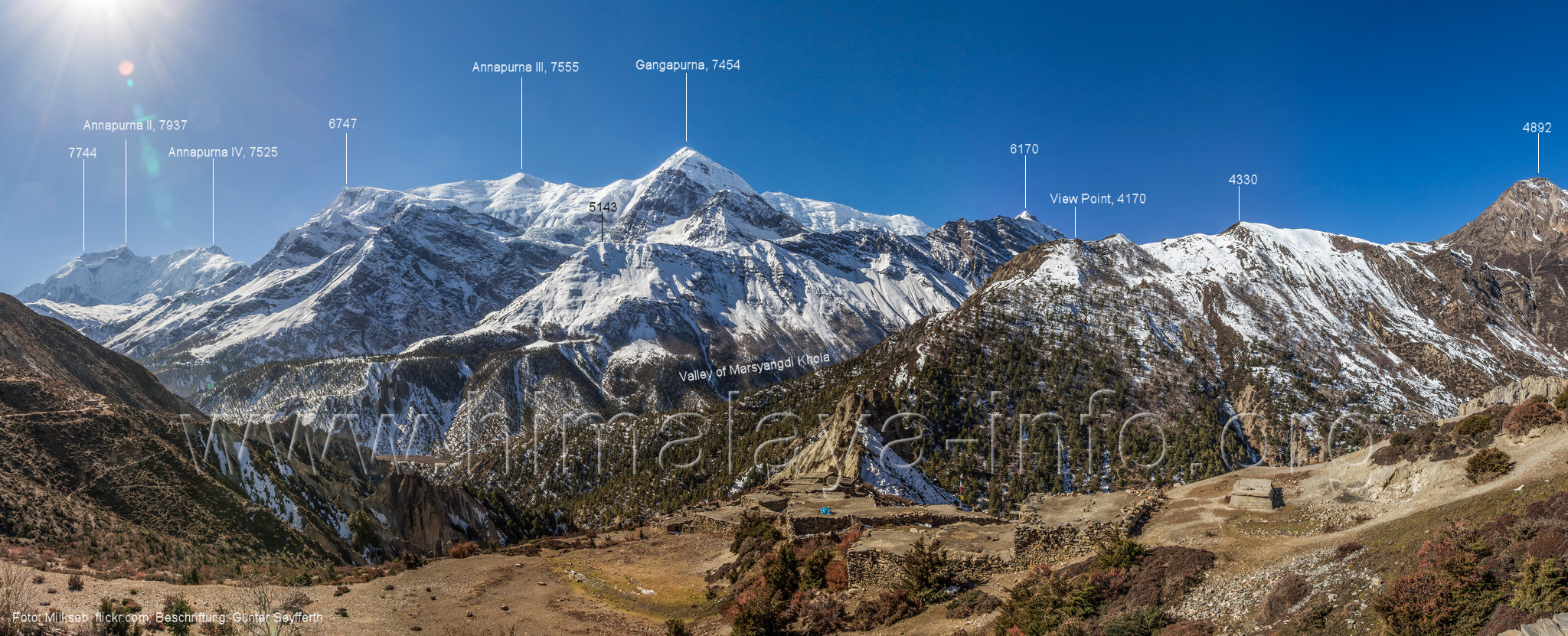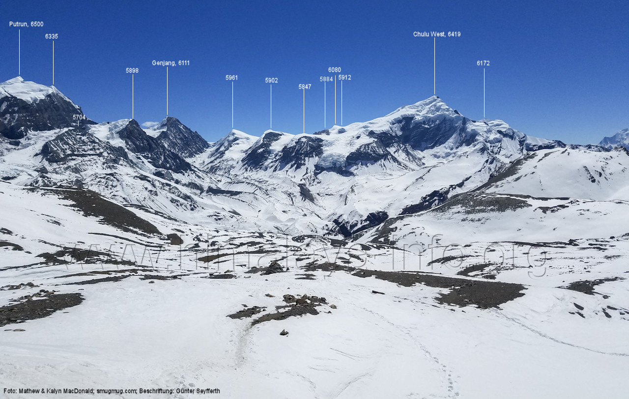 nach Ghusang nach Süden bis Westen mit Gangapurna (7454 m) undTilicho (7134