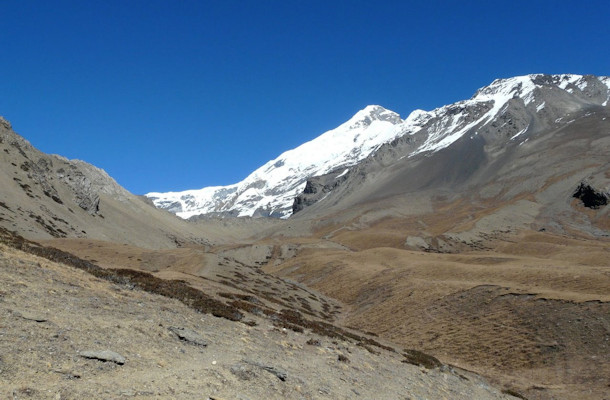 die Nordflanke von Thorong Ri (6144 m) und Khatung Kang (6484 m)