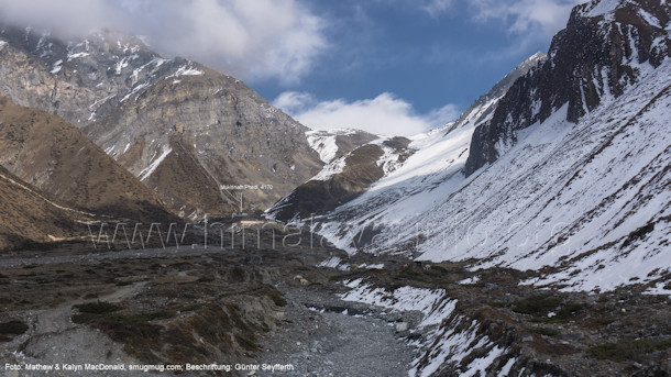 Hangkante vor der Annapurna III und dem Gipfel 4 km beträgt und dass dort