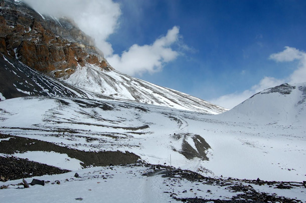 (53) Blick während des Abstiegs vom Thorong La in ca. 4990 m