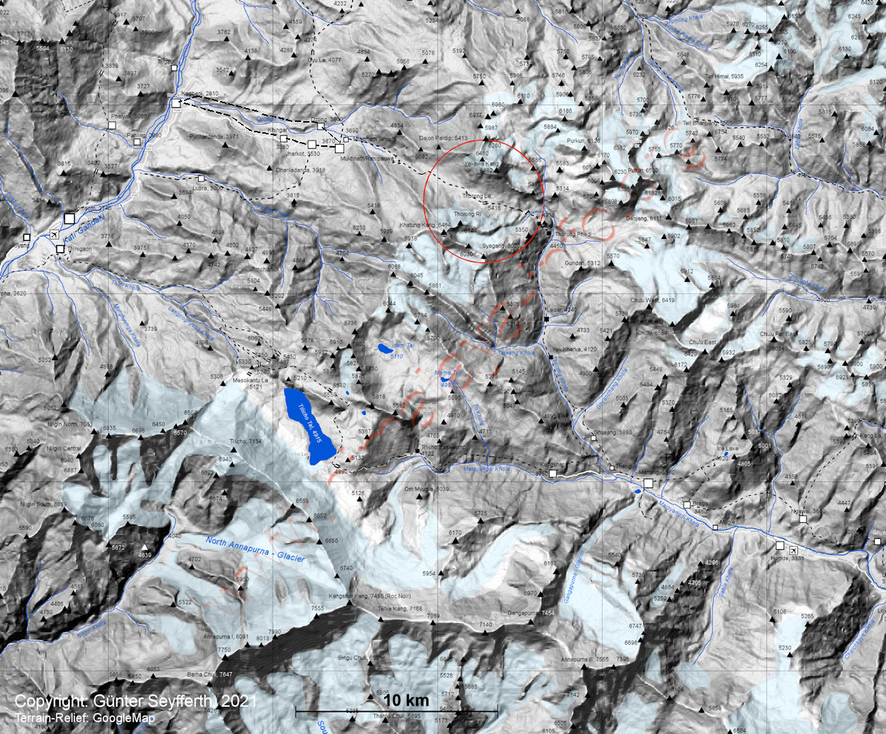 (1) Landkarten-Ausschnitt des nördlichen Annapurna Himal mit Thorong La