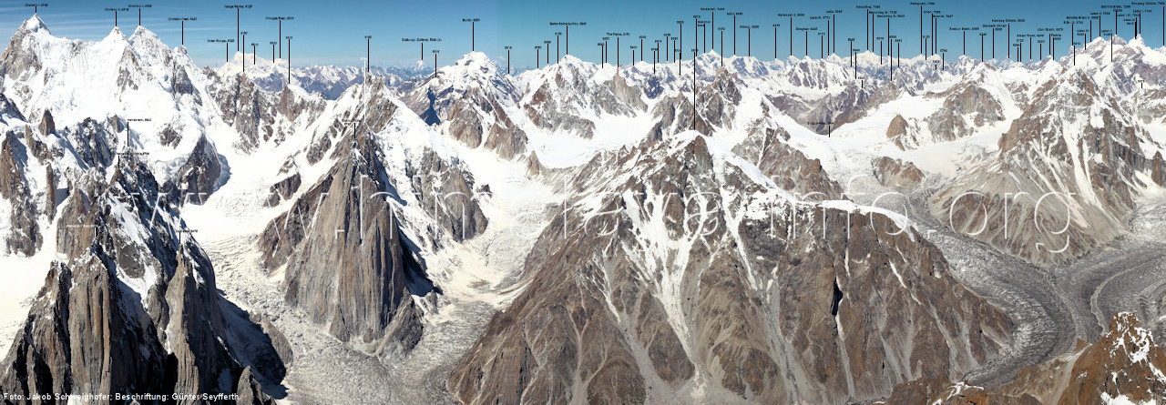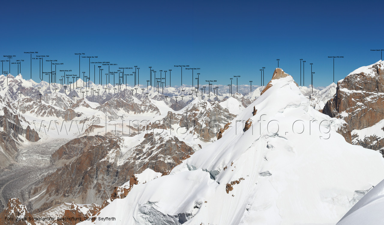 Gipfelpanorama vom Trango II, 6327 m am Baltoro-Gletscher/Karakorum